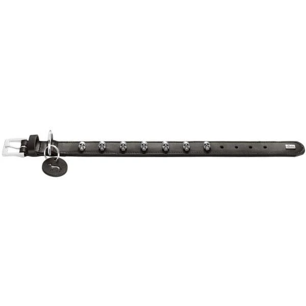 Le réglage progressif vous permet d’adapter facilement la taille du collier à votre chien. Le renforcement entre les couches de cuir réduit le risque que les ornements se détachent.